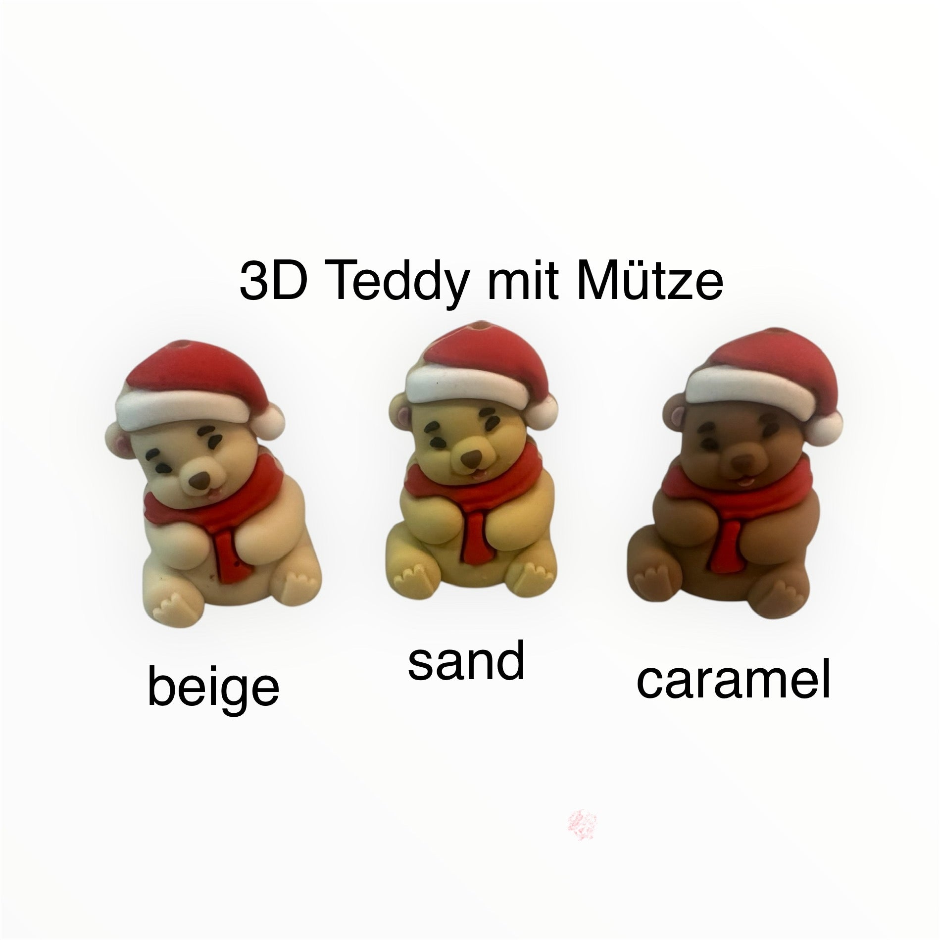 3D Motivperle Teddy mit Mütze in 3 Farben