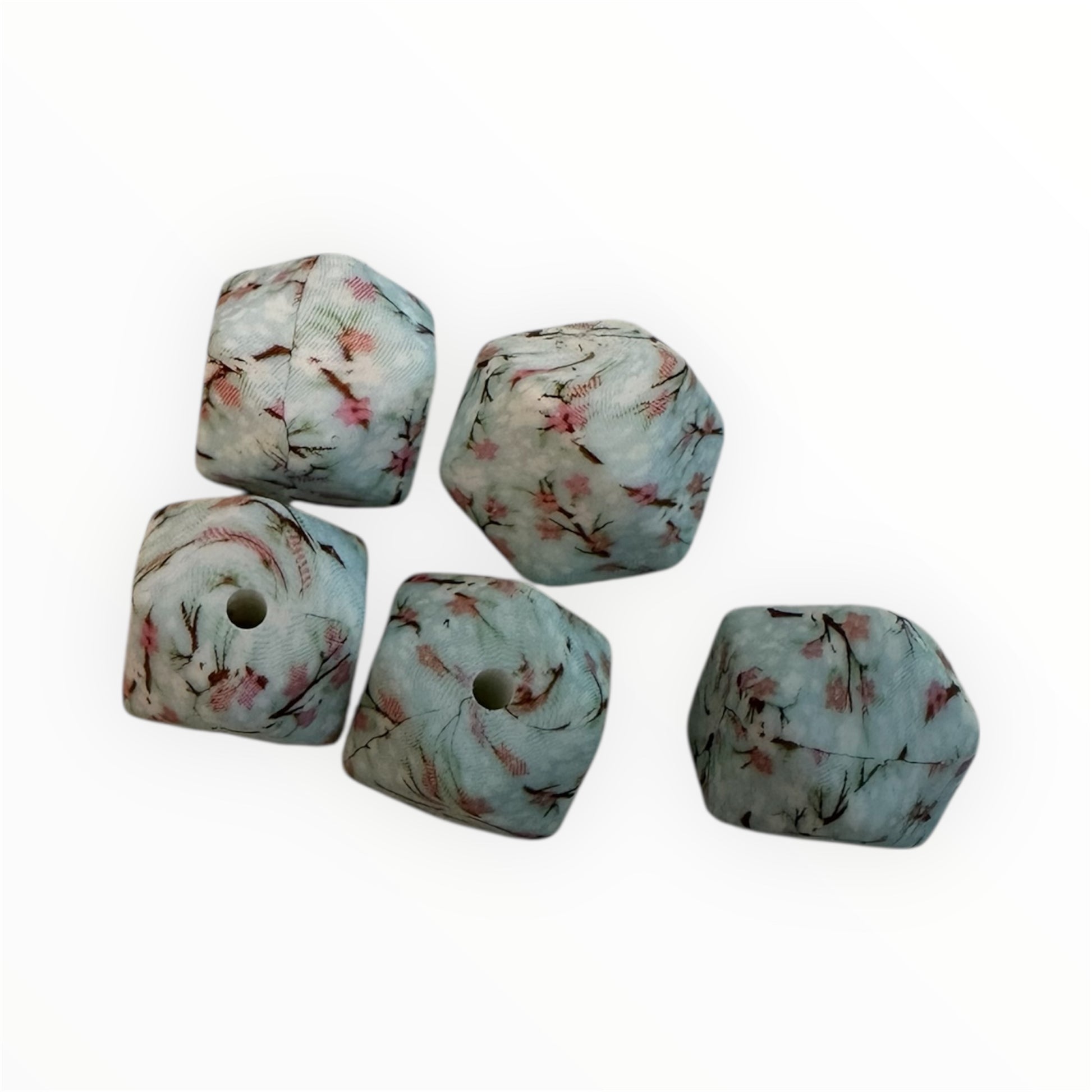 Silikonperlen Hexagon 14mm Kirschblüten