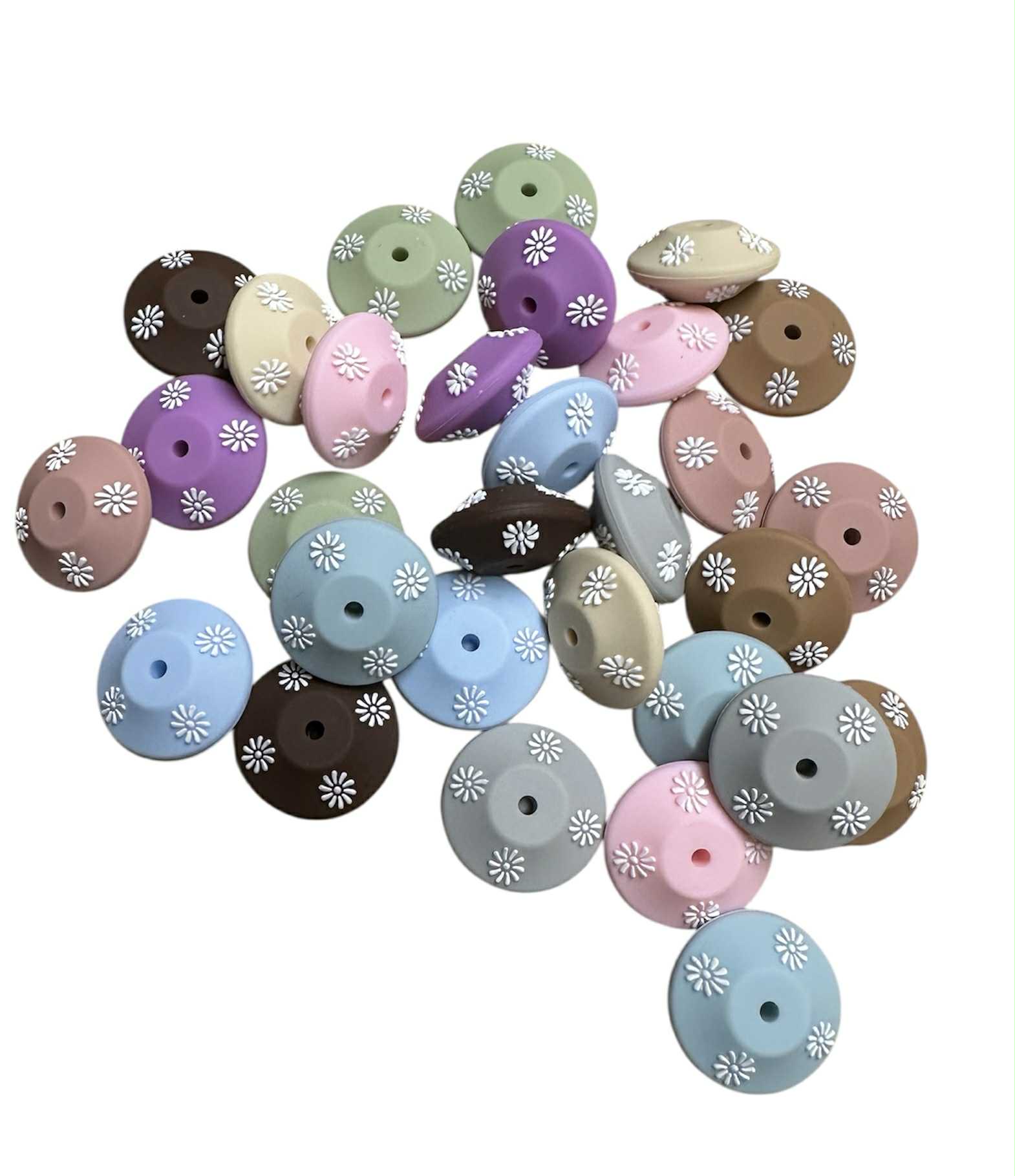 Silikonperlen spezial Rondelle mit Blümchen 17x13mm